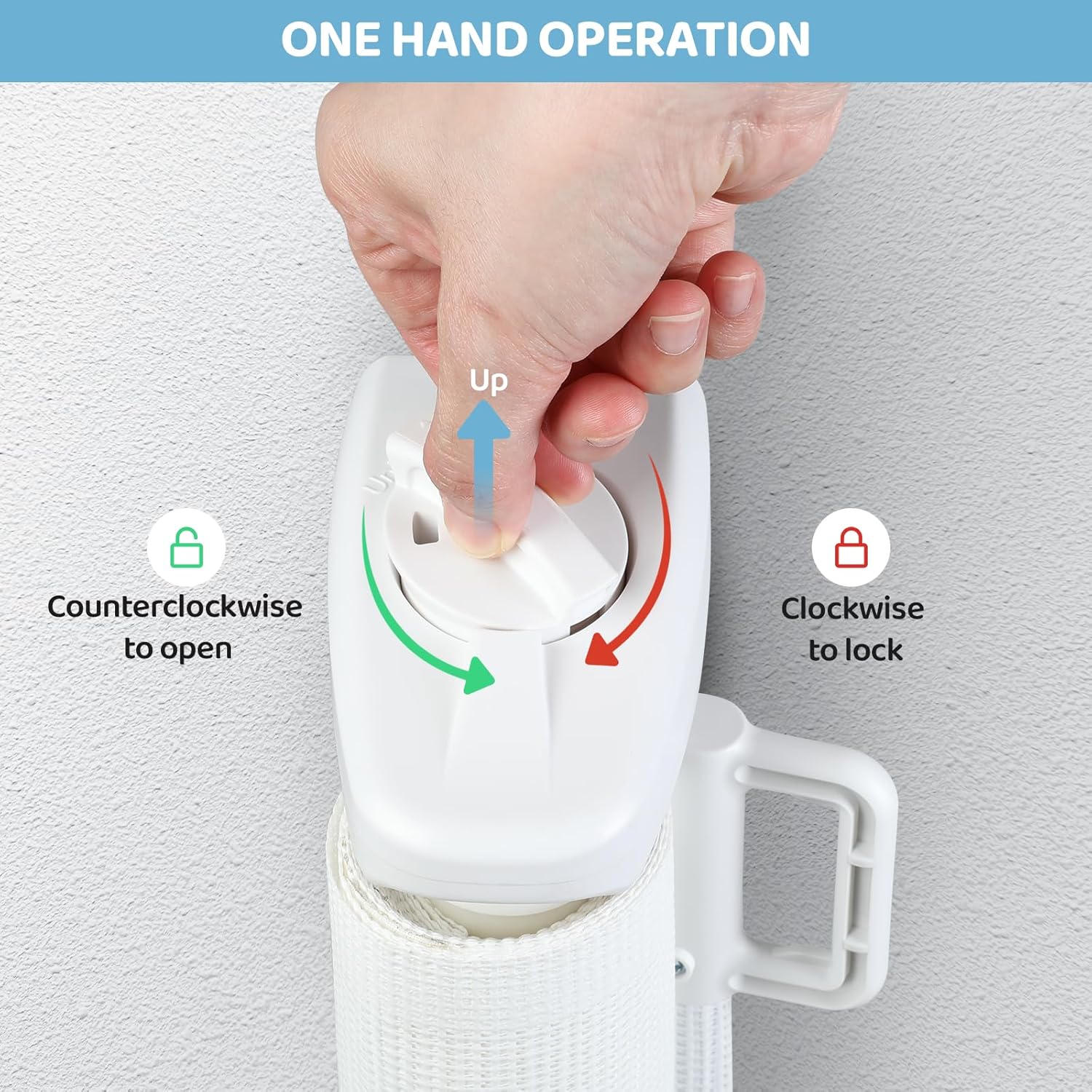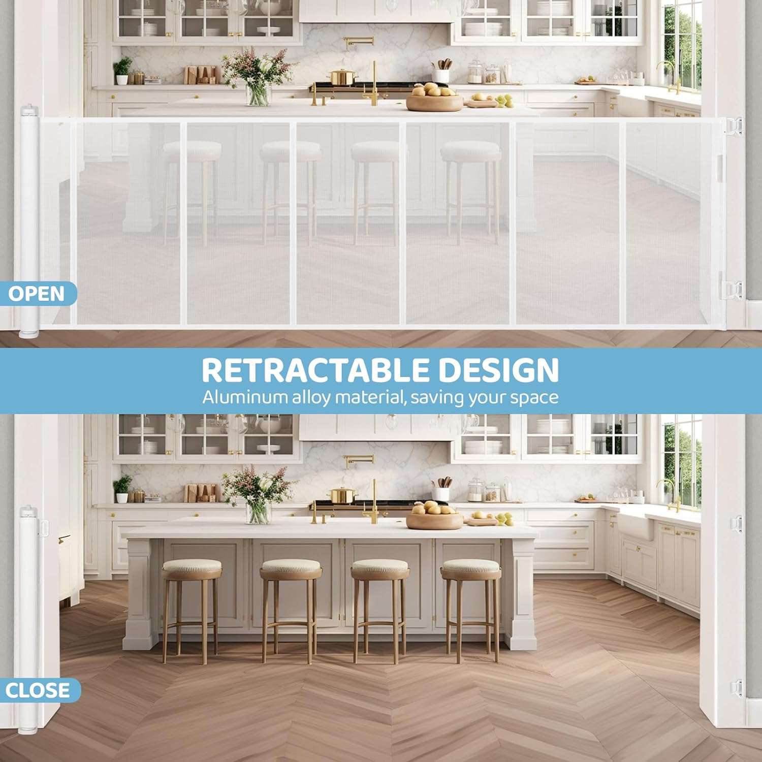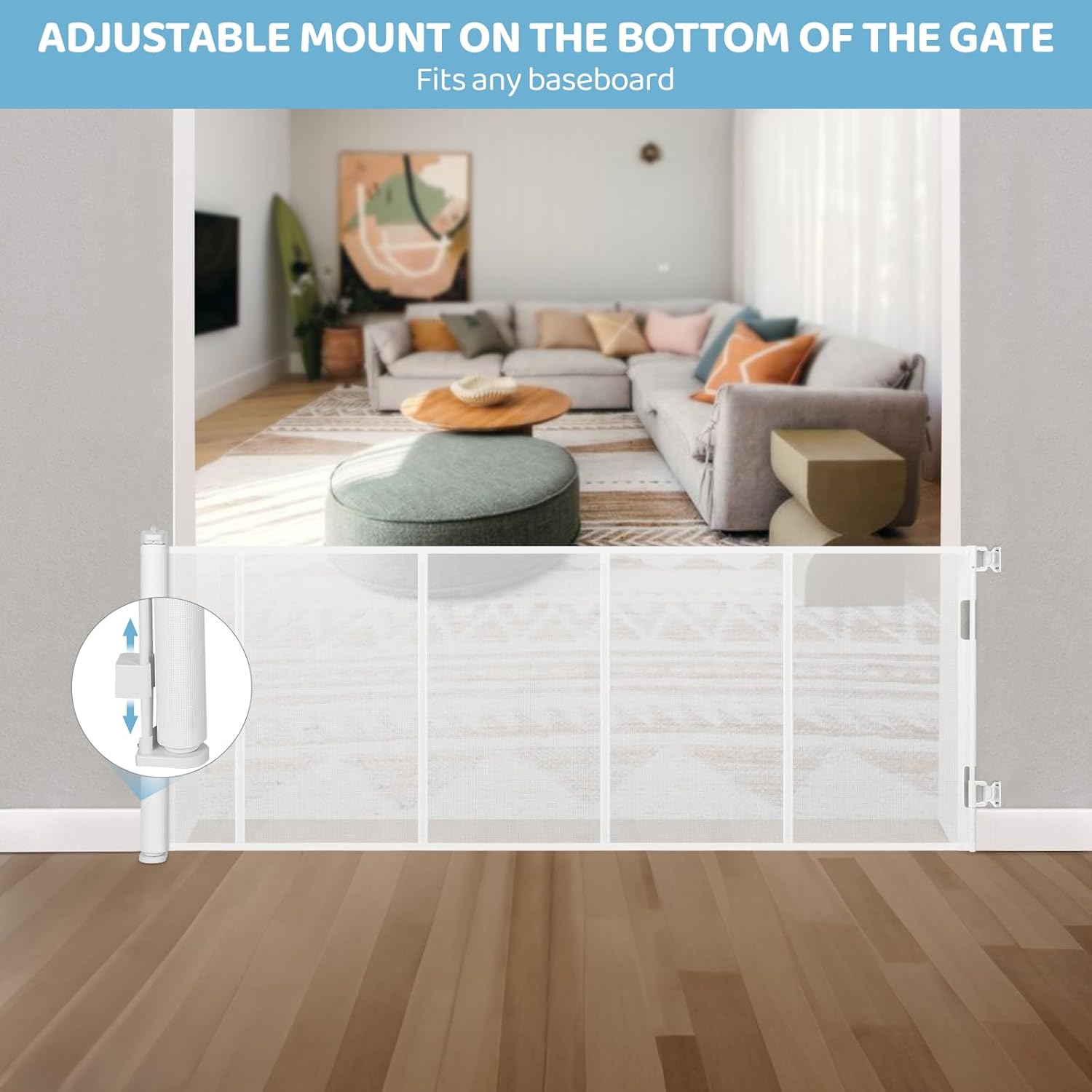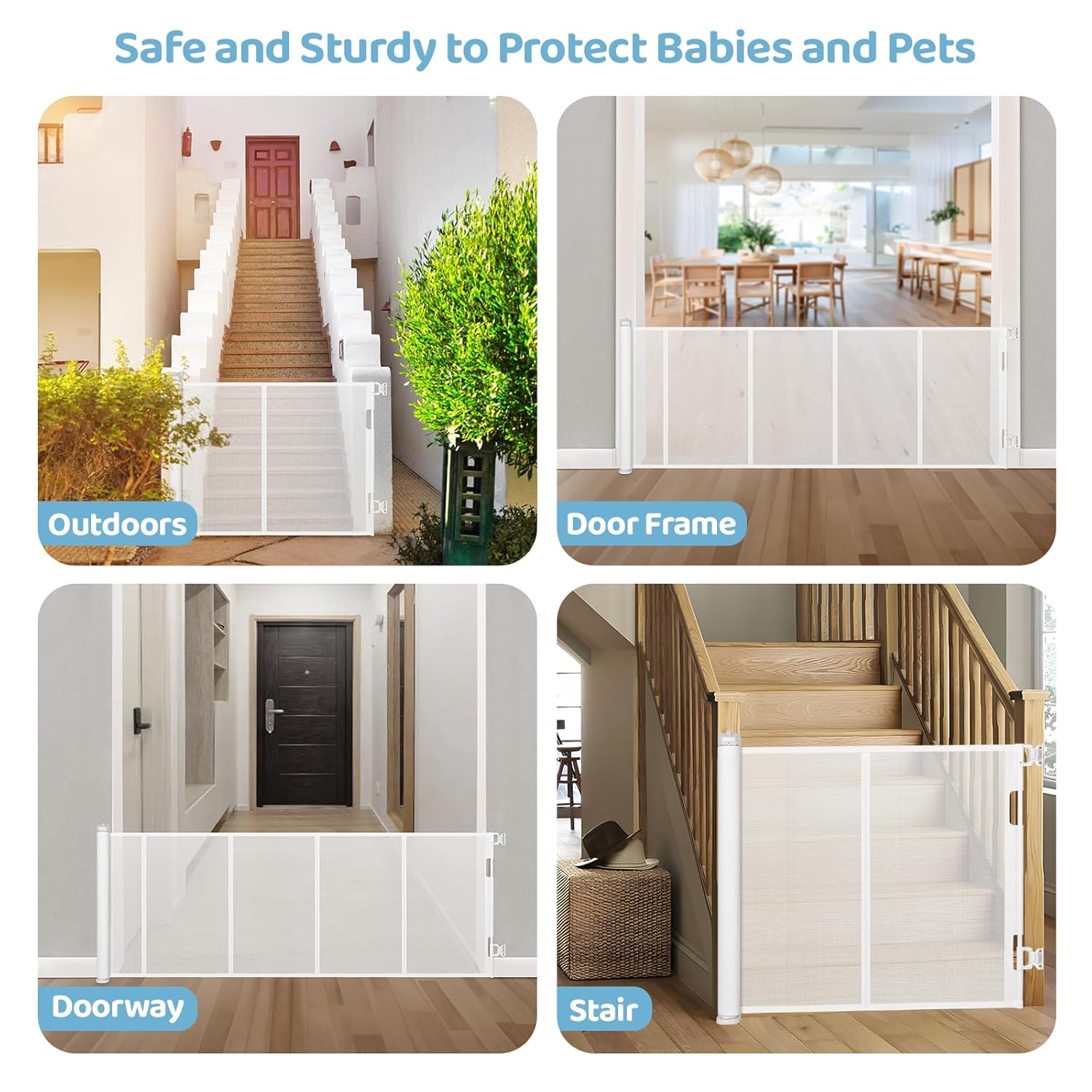 - The retractable gate with a double locking mechanism can be used as both a baby door and a pet door.