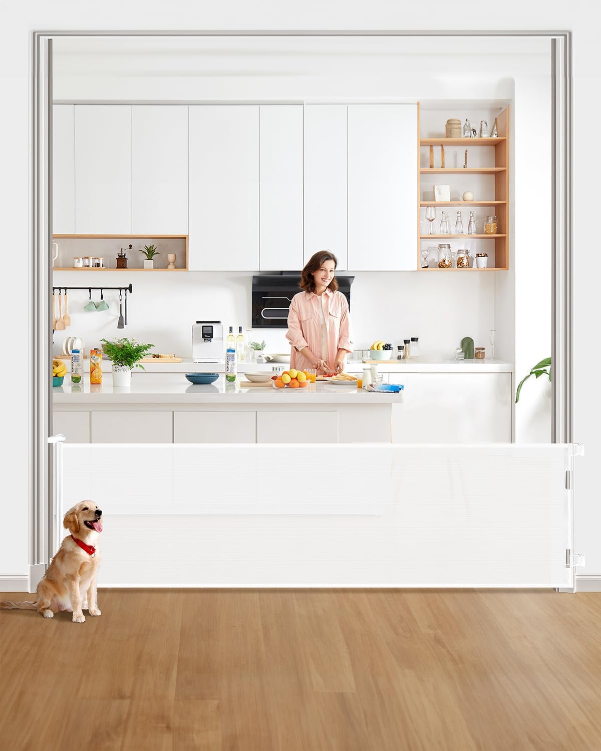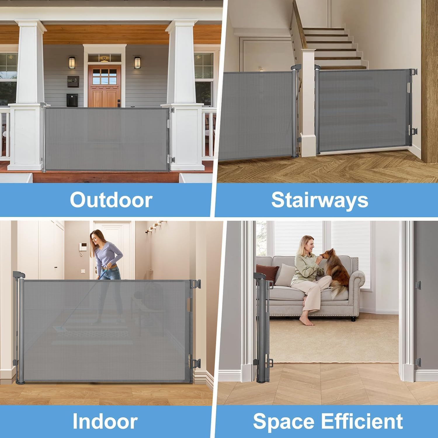 2-Pack Retractable Baby Gate for Stairs-33u201DHeight, Expands up to 55u201DWidth-Safety Gate for Infants, Toddlers, Dogs & Pets-Easy Install, Secure Closure, Gray Mesh Design for Indoor & Outdoor Use