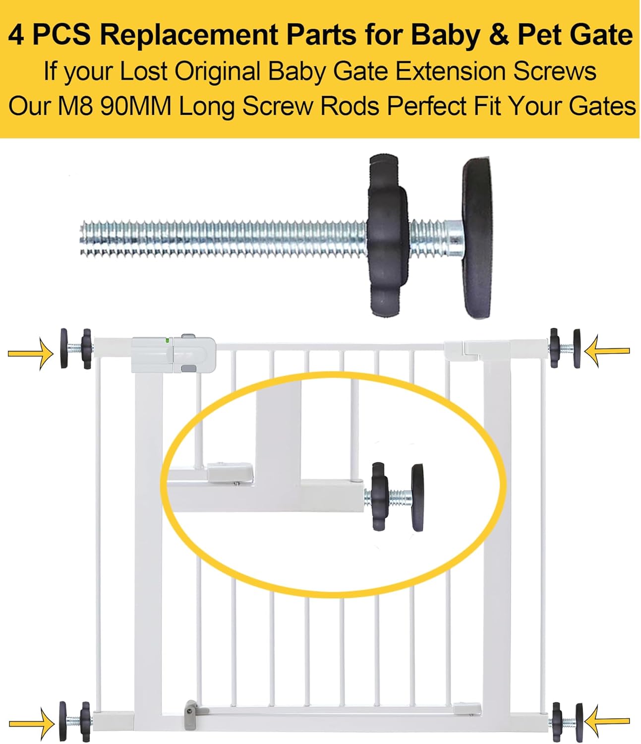 - REPLACEMENTS PARTS WORKING LIKE THE ORIGINAL – Our baby gate accessories hardware parts works just like your original baby gate's and dog gate's tension screws. If your original tension screw wall mounted parts are lost or broken, you can choose our baby safety gate threaded spindle rods for replacement.