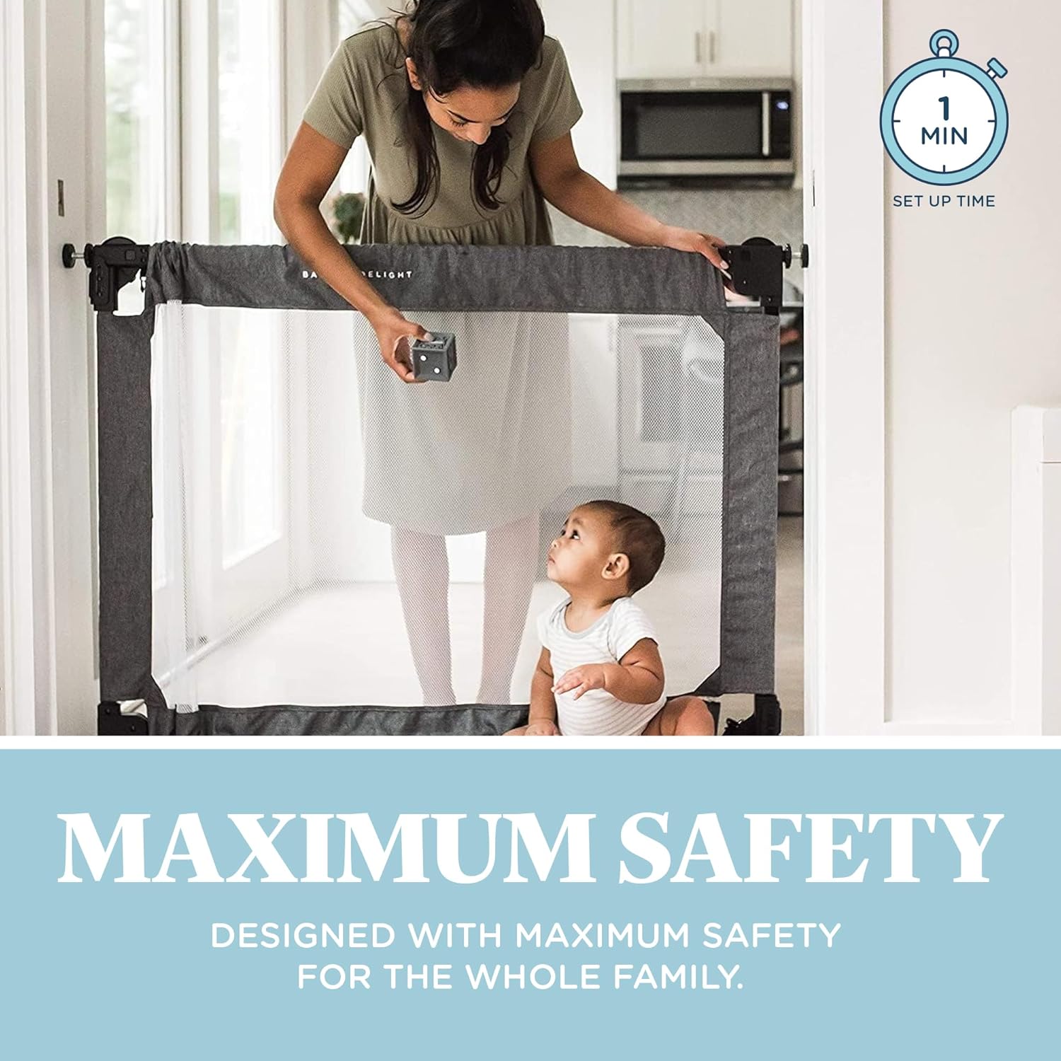 The Span can be set up in less than a minute and taken down in even less time. With the click of two buttons the gate folds up super compactly.