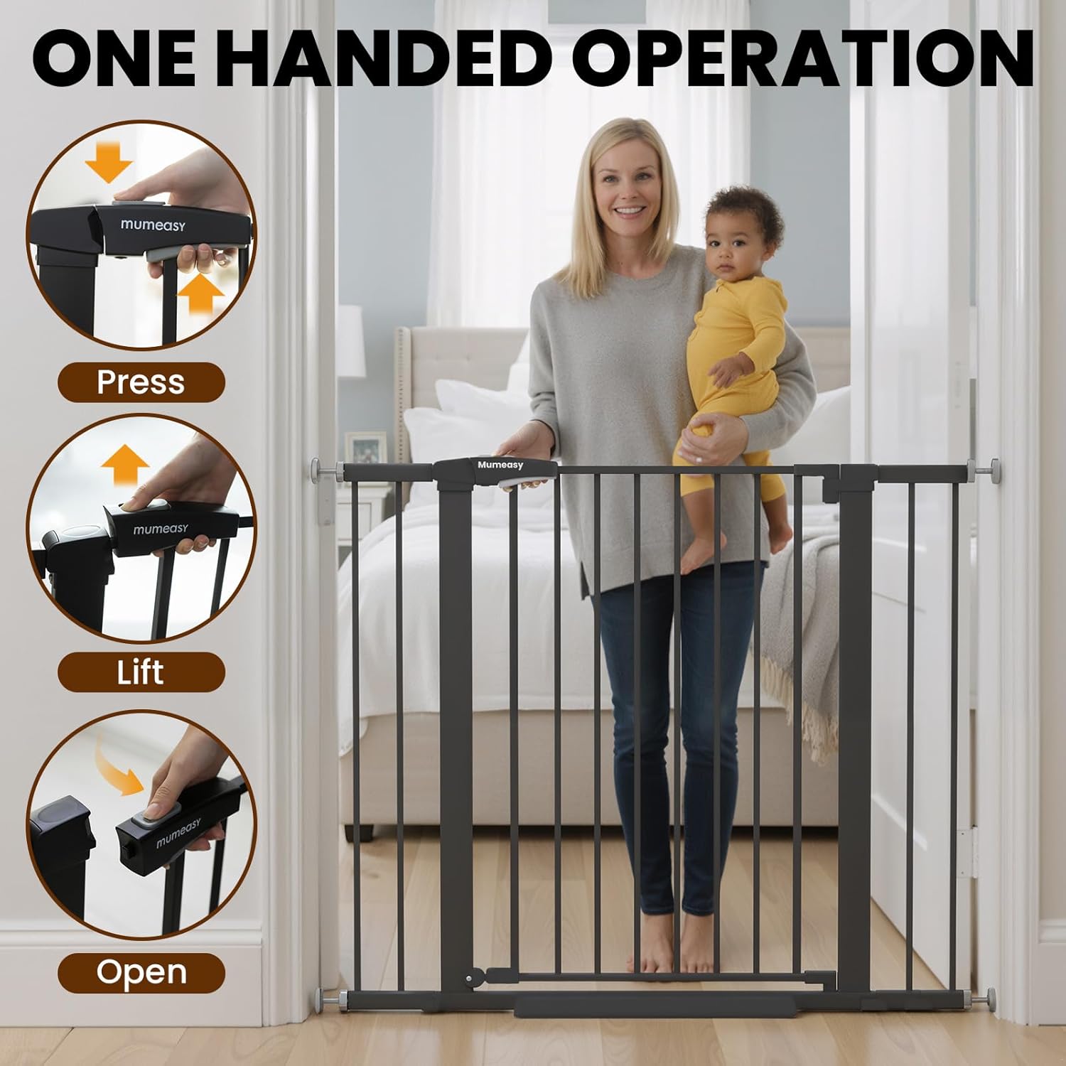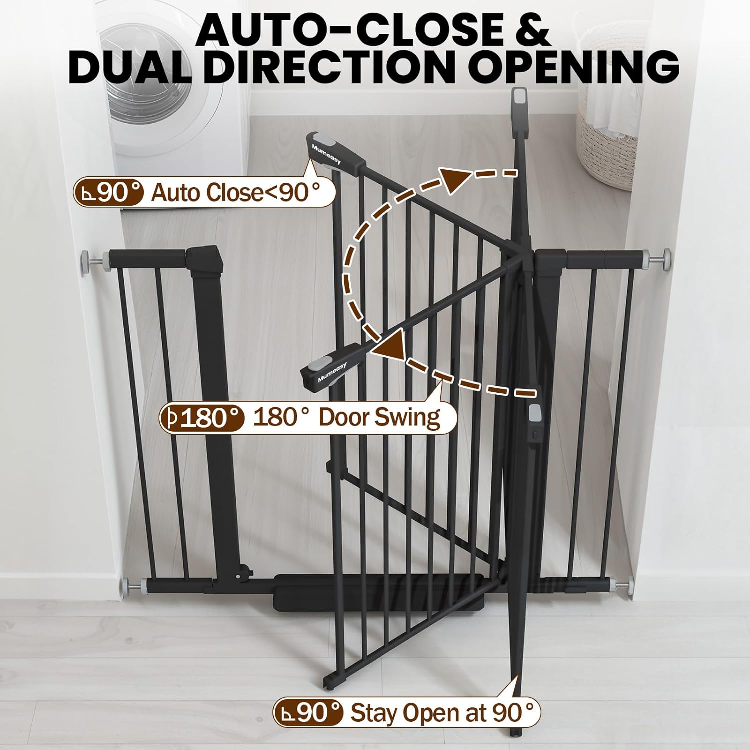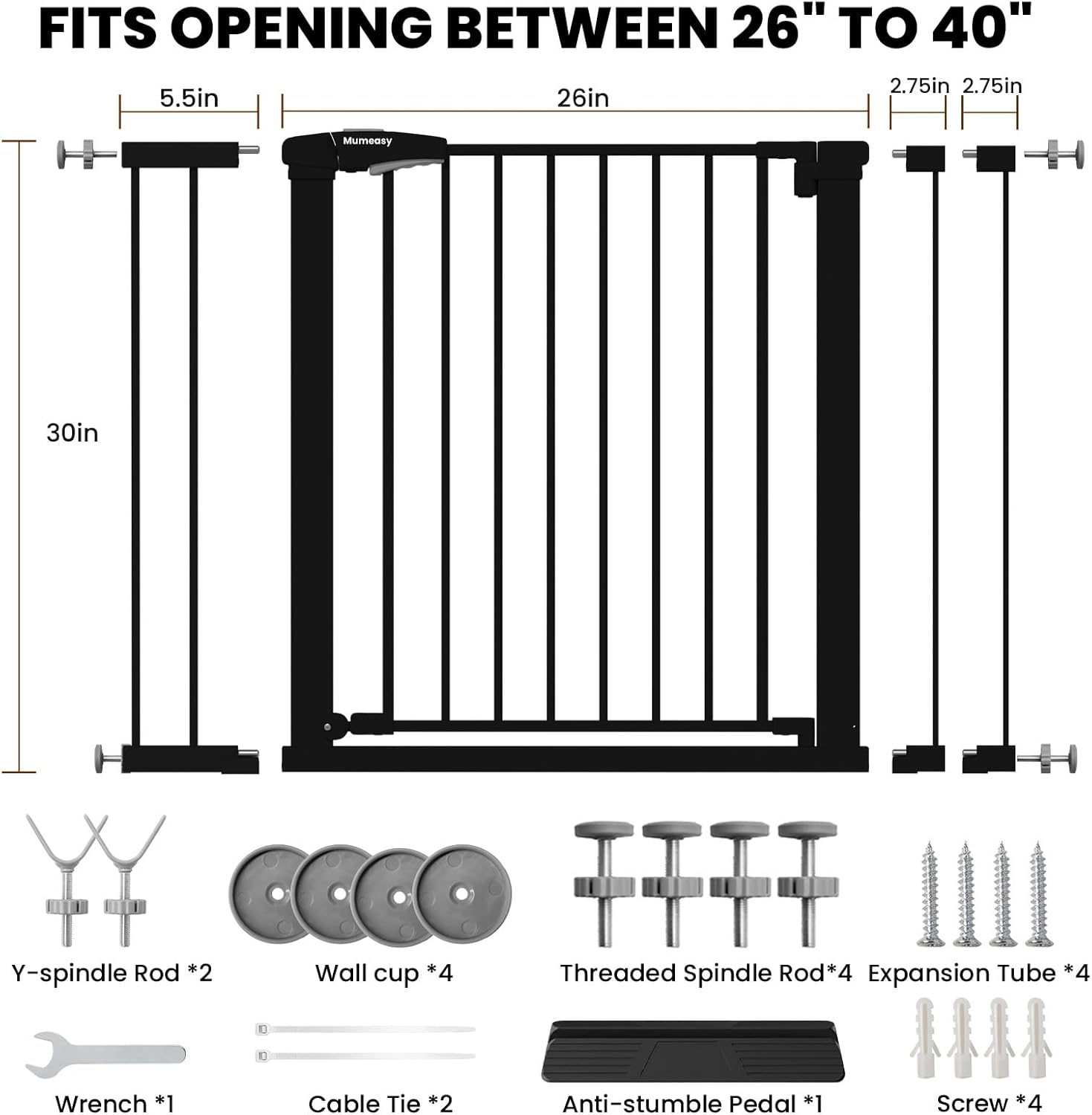 Baby Gate with Door, 26-40″ Auto Close Dog Gate Indoor for Stairs Doorways, Easy Install Pressure Mounted Pet Gate, Easy Walk Through Child Safety Gate for The House, Black