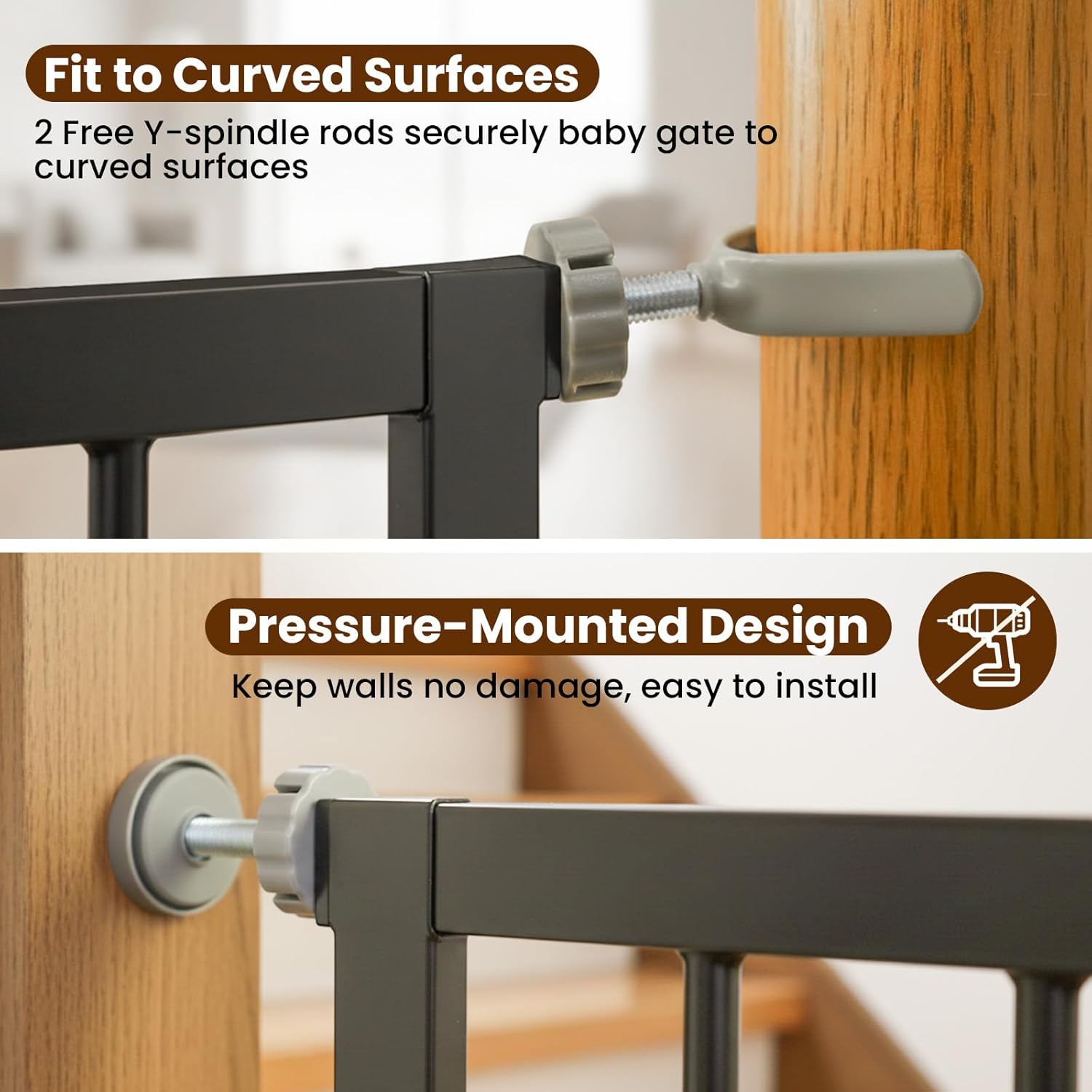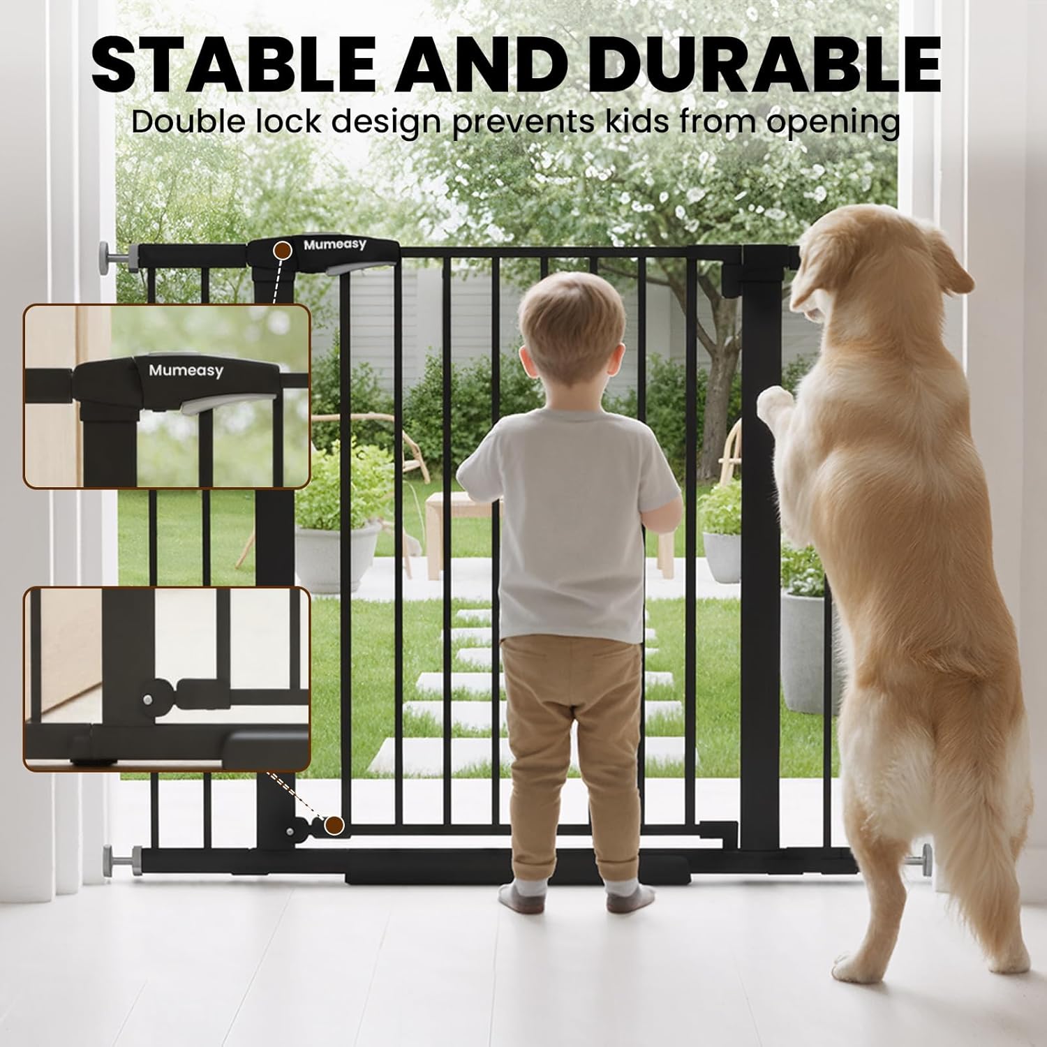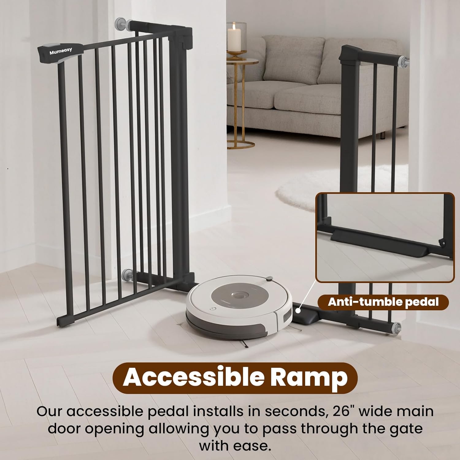 Baby Gate with Door, 26-40″ Auto Close Dog Gate Indoor for Stairs Doorways, Easy Install Pressure Mounted Pet Gate, Easy Walk Through Child Safety Gate for The House, Black