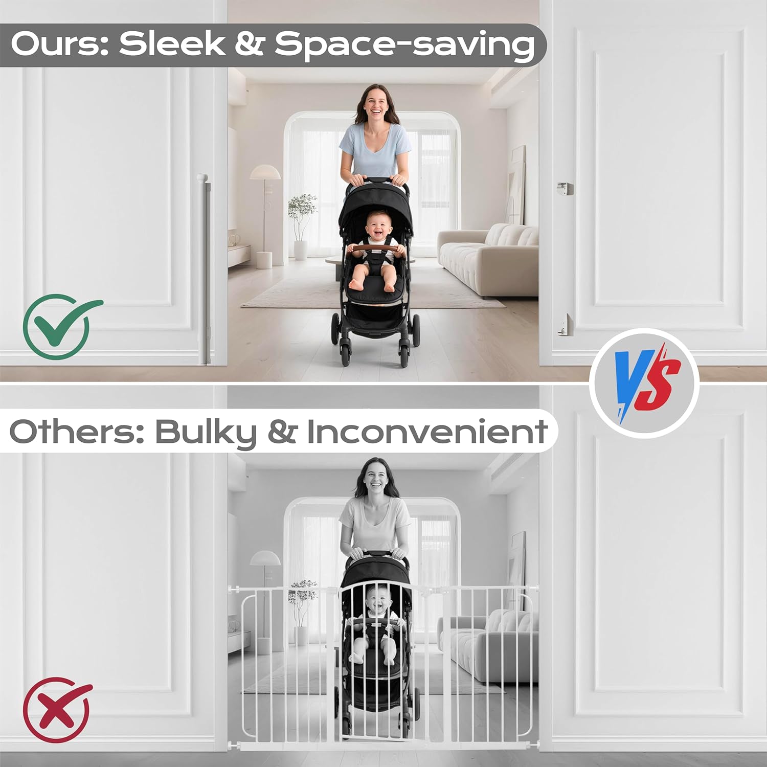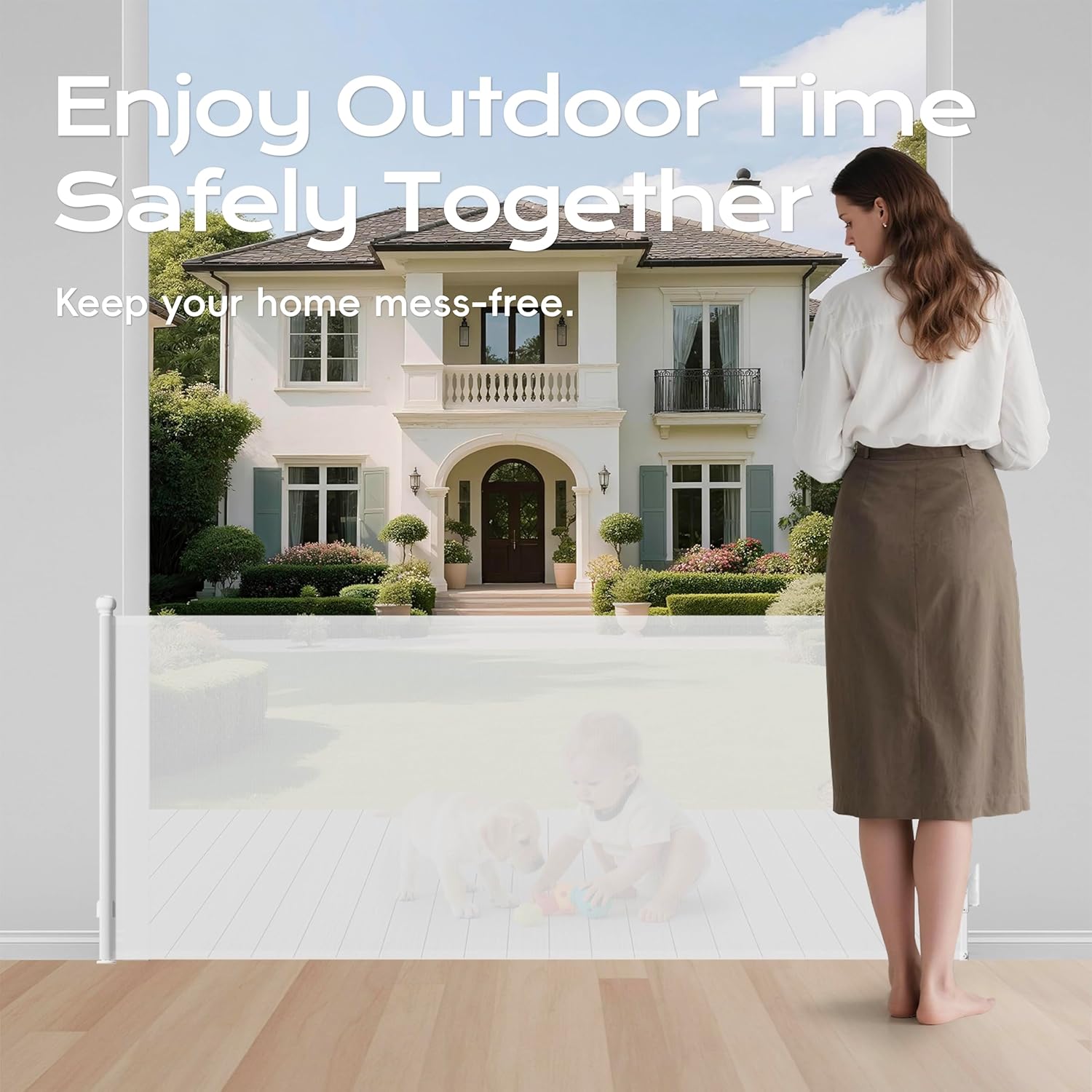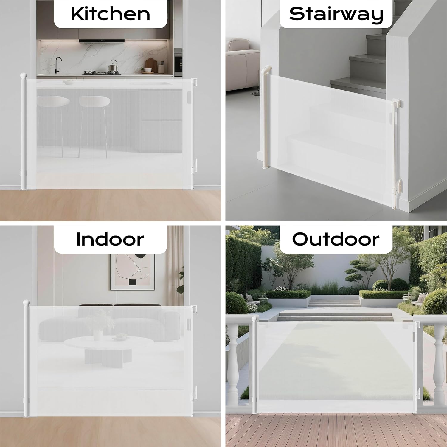 BBsecure Retractable Baby Gate for Stairs, 55″ Wide 38″ High Pet Gate with Auto-Retract System, One-Hand Operation, Mesh Baby Gate for Doorways, Hallways, Decks, Indoor & Outdoor, White