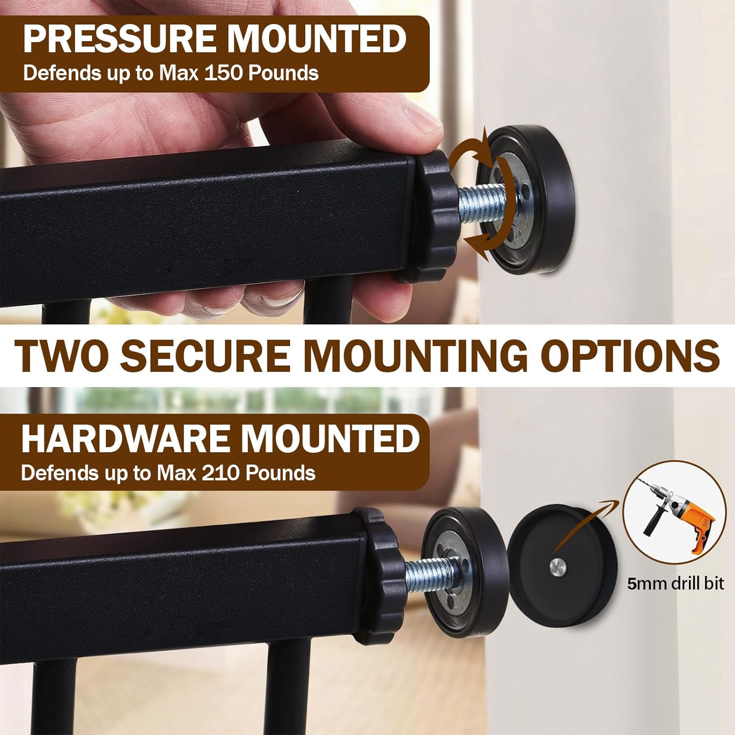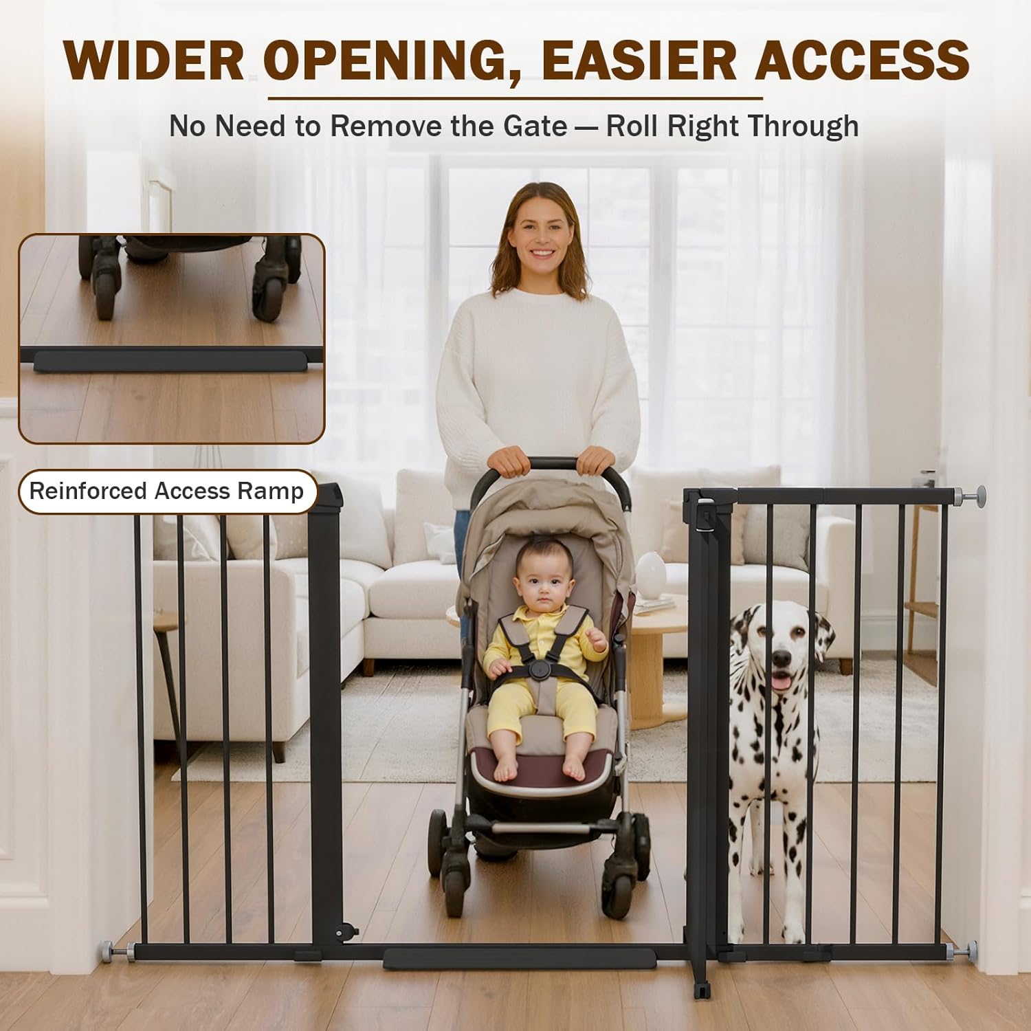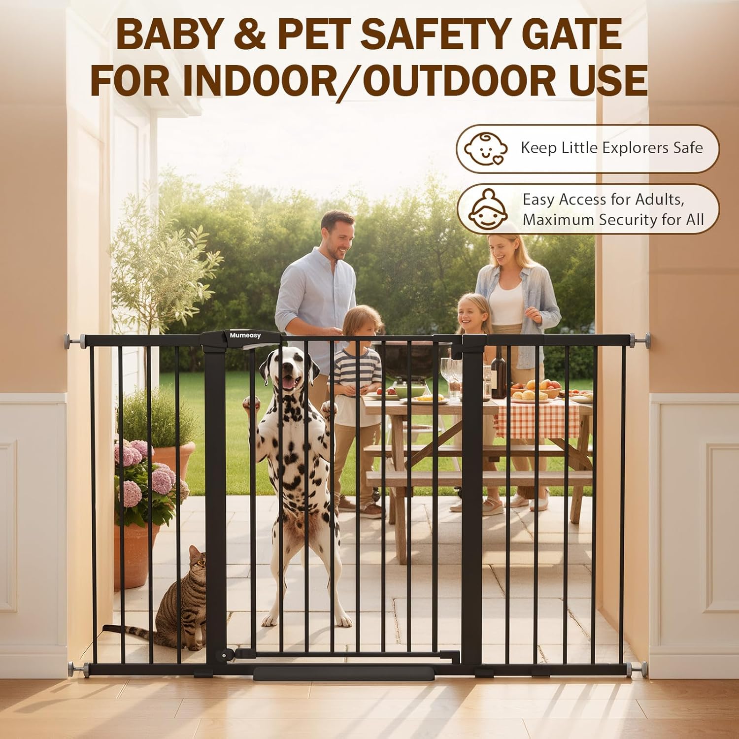 Mumeasy 29.7-57″ Extra Wide Baby Gate, Auto Close Large Dog Gate for Doorways, No Drilling Pressure Mounted Pet Safety Gate for Stairs, Easy Walk Through Child Gate for Hallways, House, Indoor, Black
