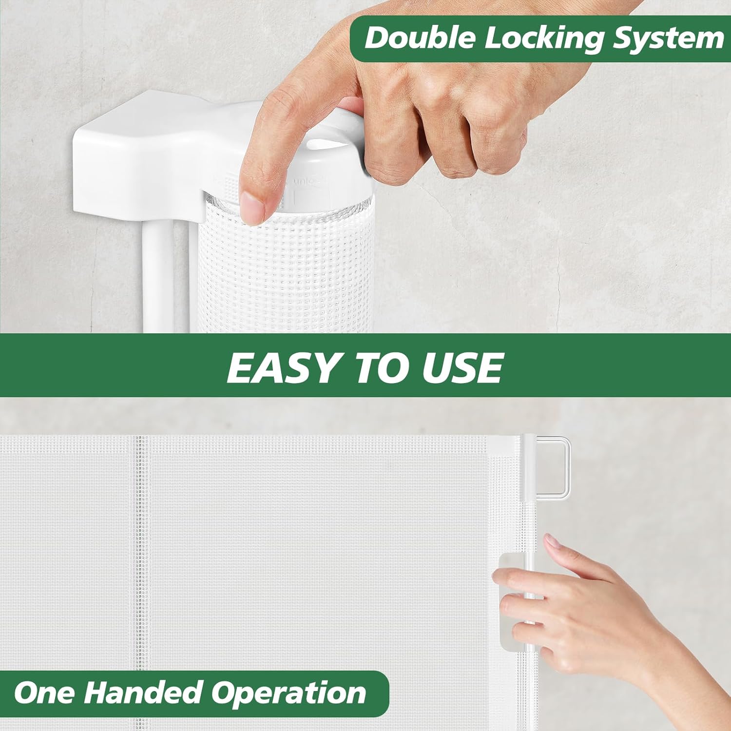 Childproof Locks – Double locking design prevents babies and dogs from accidentally opening it. Provide a safer environment for your child.