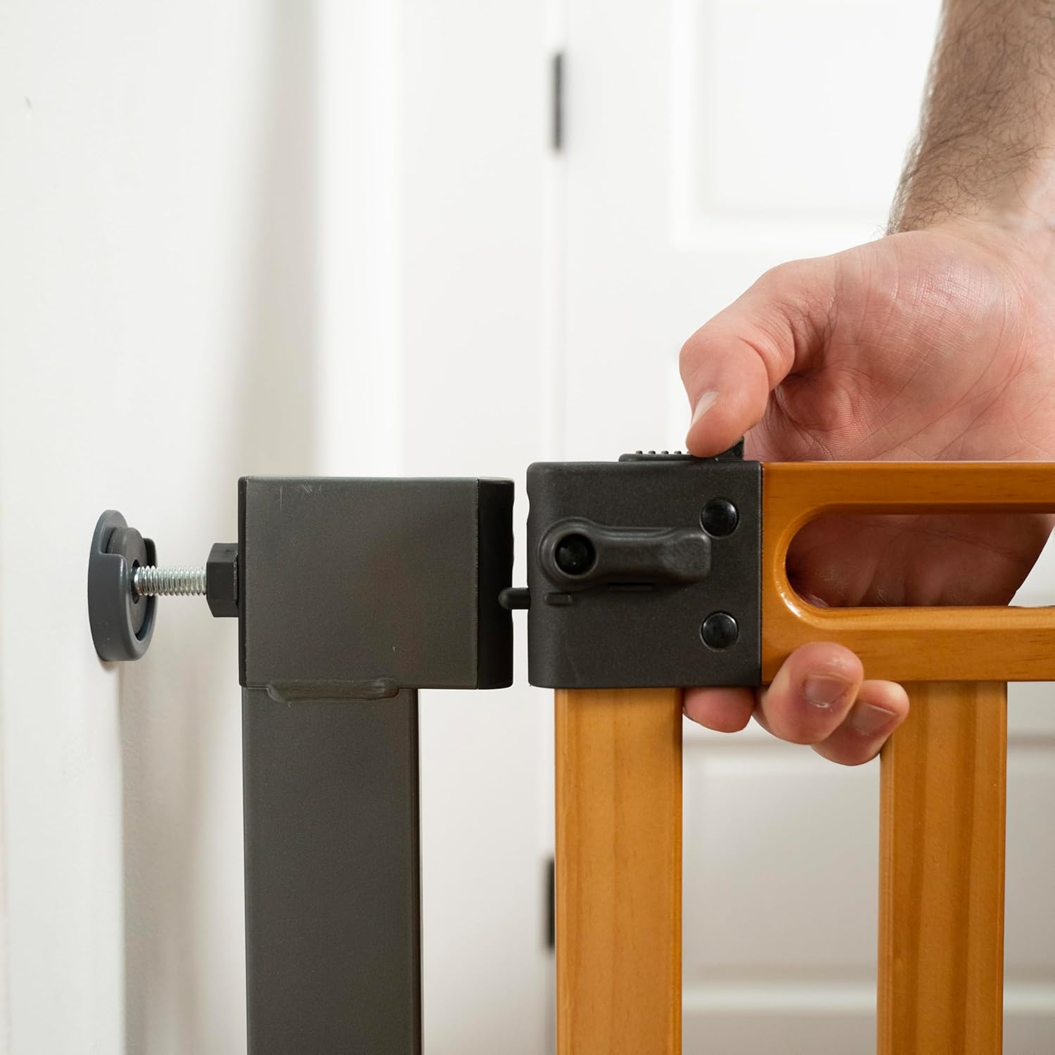 Installing in a doorway or hallway? Use the no-drill pressure mount system with adhesive wall cups and tension bolts – no drilling into your walls or trim. Using the gate at the top or bottom or stairs? The included hardware kit allows you to drill into the wall which anchors your gate for added security, so you can get back to spending quality time with your family in their newly-secured space.