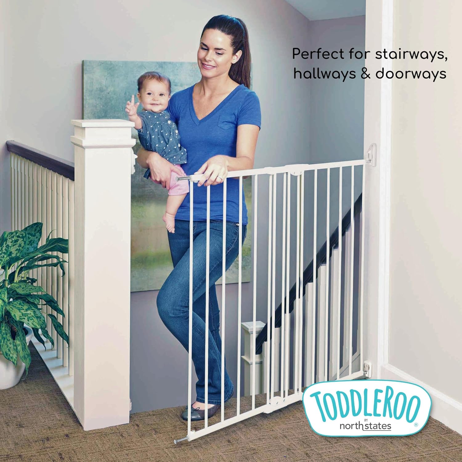 Toddleroo by North States – Tall Easy Swing & Lock Baby Gate Series 2: Metal Safety Gate for Stairs & Doorways – Adjustable 28.68 to 47.85 Inches Wide – 36 Inches Tall – Warm White