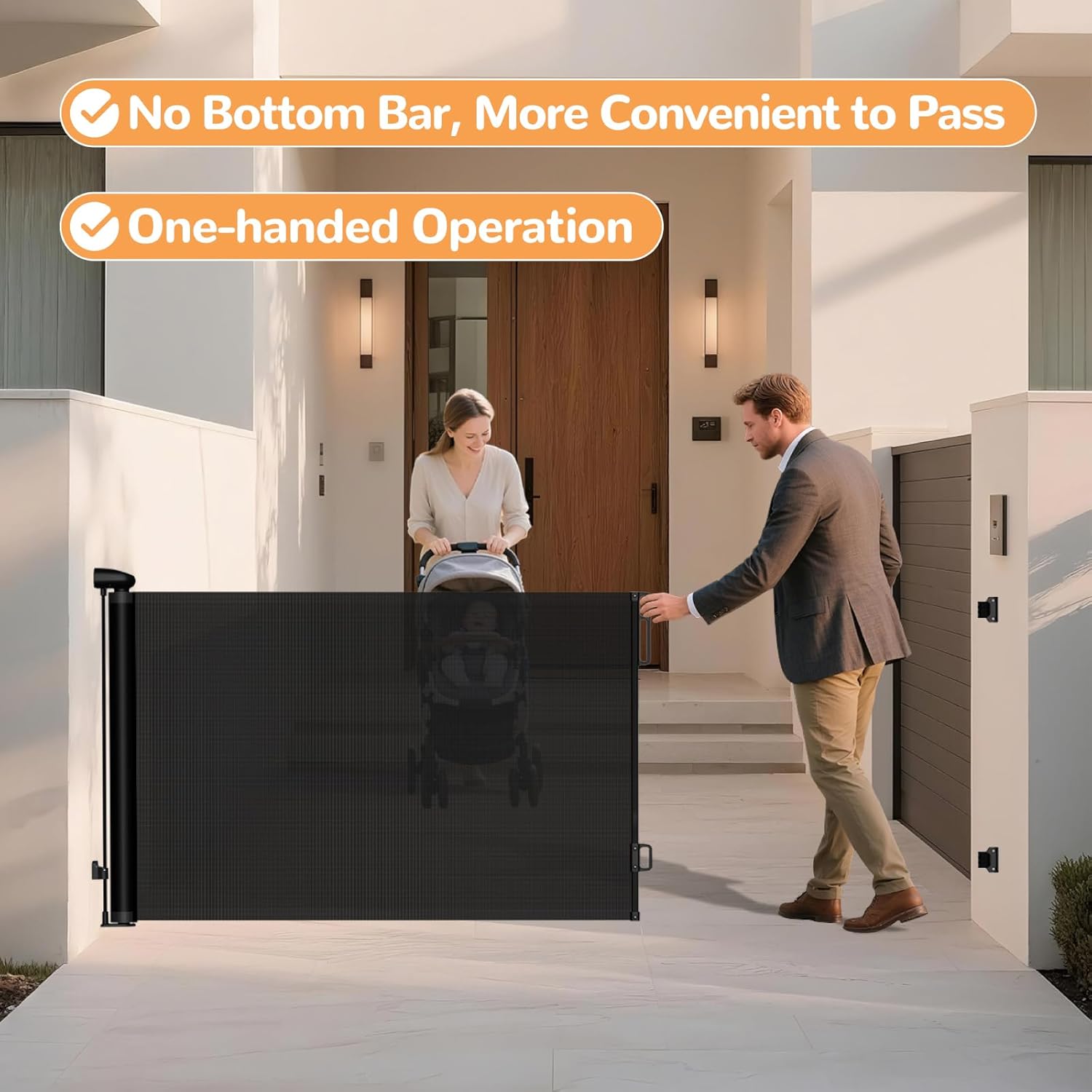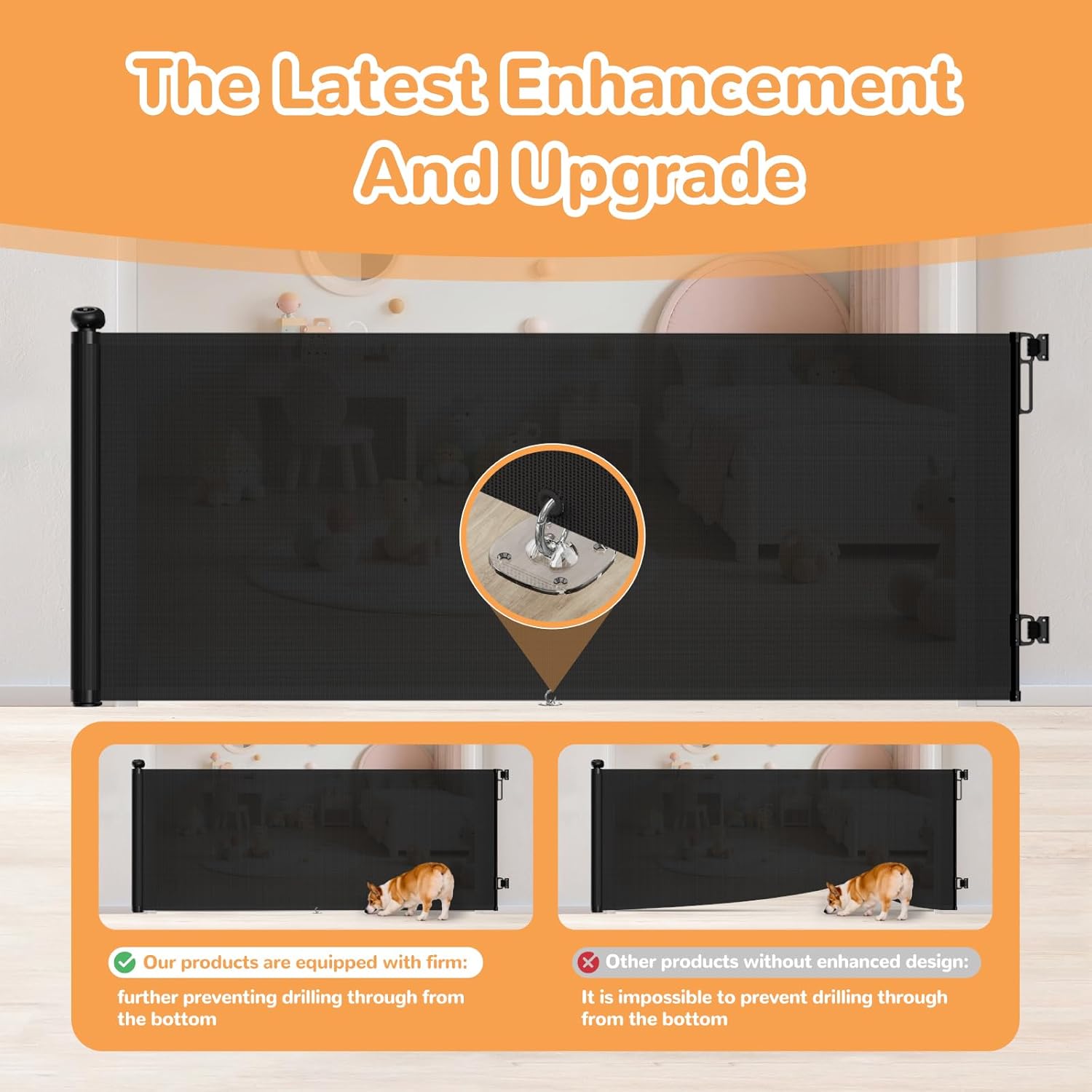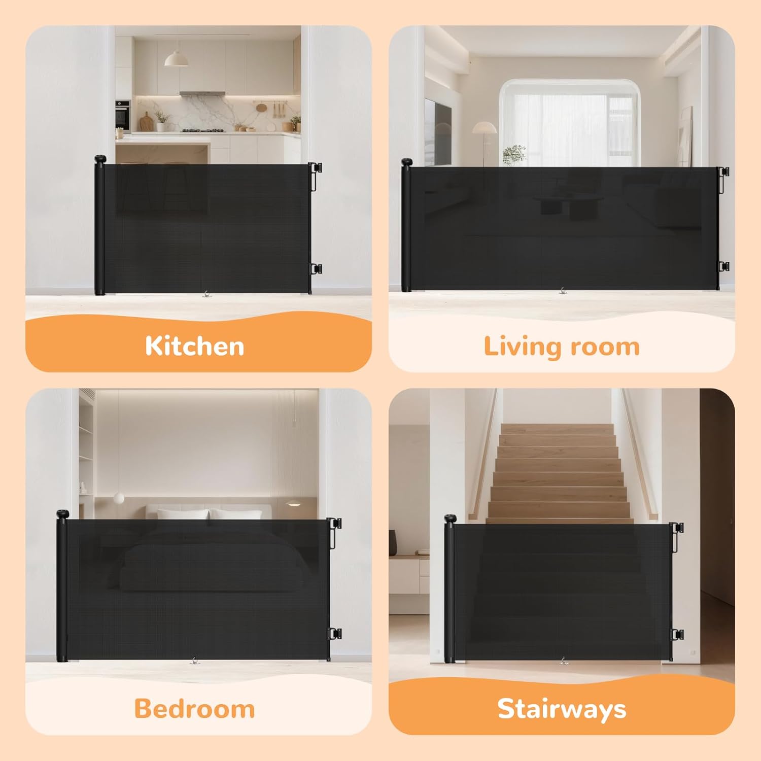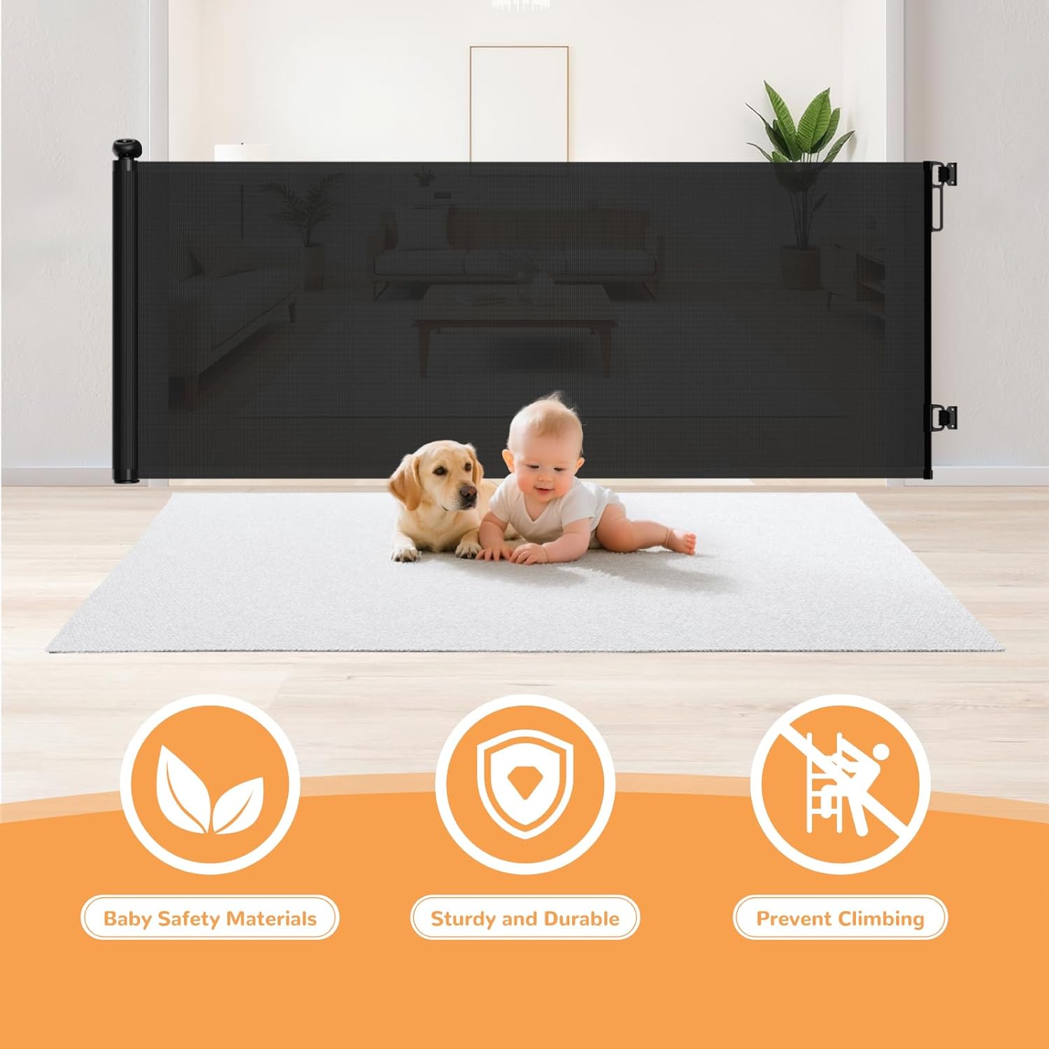 TrusTot Retractable Baby Gates for Stairs, 55″Wide x 34″Tall Mesh Baby Gate with Anti-Crawling Hook, Adjustable Baseboard Bracket, Child Gate for Hallways, Doorways, Kitchen, Indoor & Outdoor, Black
